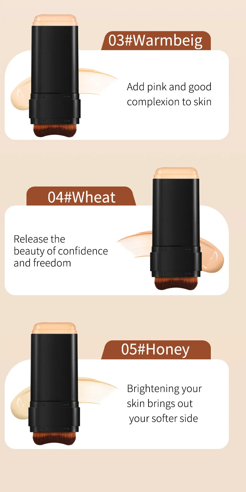 This skin-friendly foundation stick is designed for effortless beauty. Its soft, waxy texture feels comfortable and breathable, making it ideal for daily wear. Whether you're going for a natural look or building up coverage, this foundation delivers a polished, radiant finish every time.